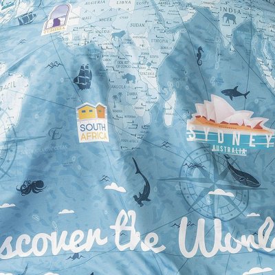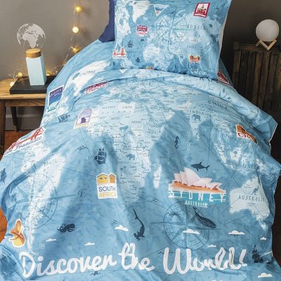 Posteľné bavlnené obliečky Mappie v nádhernom dizajne pre mladých, zobrazujúce mapu sveta a kontinenty. Zipsové komfortné zatváranie, pre jednoduchšie prezliekanie obliečok.