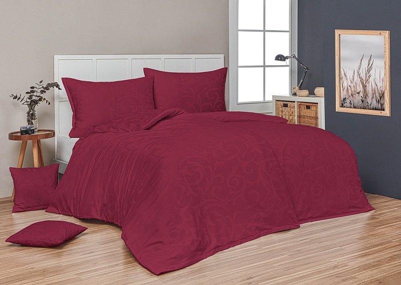 Damaškové prevedenie vo výraznej bordovej farbe je veľmi elegantné.