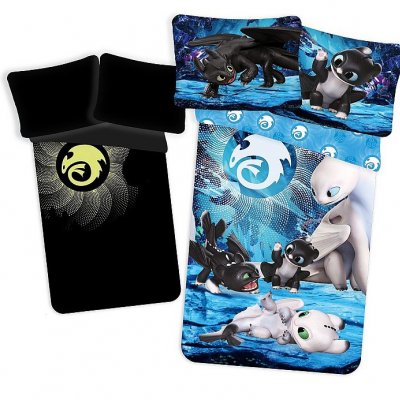 Posteľné obliečky ktoré v noci svietia. Bavlnené obliečky s motívom Ako vycvičiť draka 3 so svietiacim efektom.