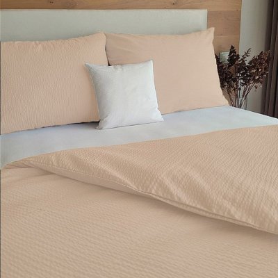 Posteľné návliečky v béžovom prevedení, ktoré netreba žehliť. Jednoduché neutrálne obliečky v praktickom krepovom prevedení bez žehlenia.