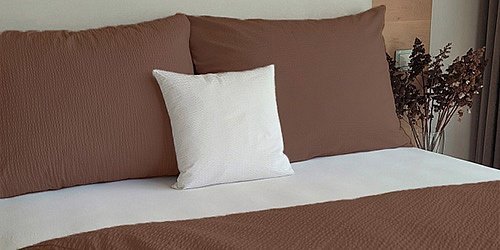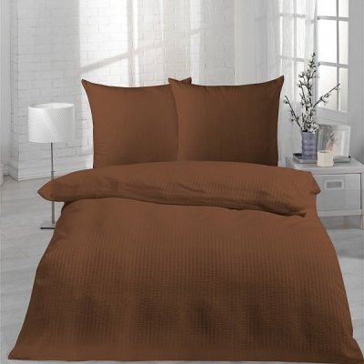 Posteľné návliečky v hnedom prevedení, ktoré netreba žehliť. Jednoduché neutrálne obliečky v praktickom krepovom prevedení bez žehlenia.