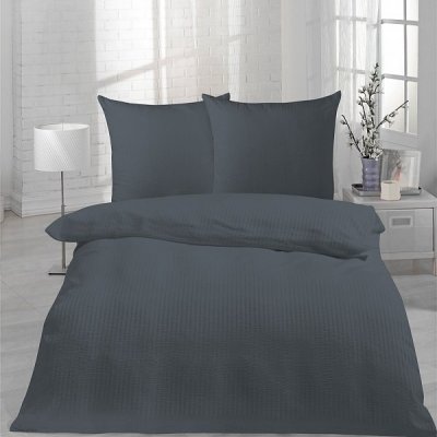 Posteľné návliečky v tmavo šedom prevedení, ktoré netreba žehliť. Jednoduché neutrálne obliečky v praktickom krepovom prevedení bez žehlenia.