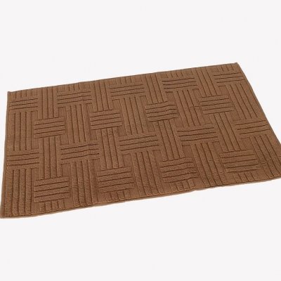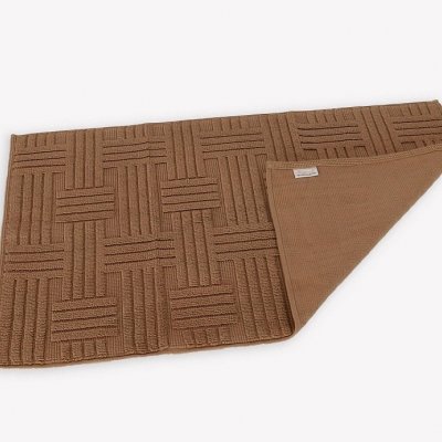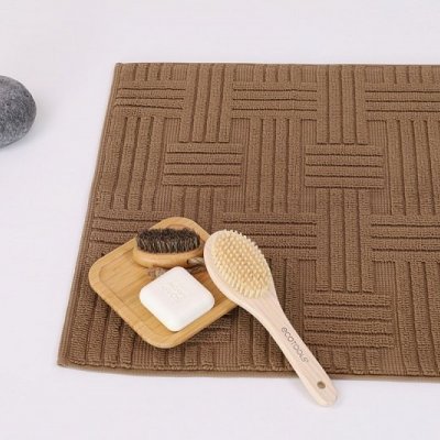 Jednoduchý vytkávaný geometrický vzor na kúpeľňovej predložke v kombinácii s dokonalým hnedým odtieňom zútulní Vašu kúpeľňu.