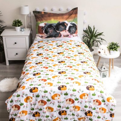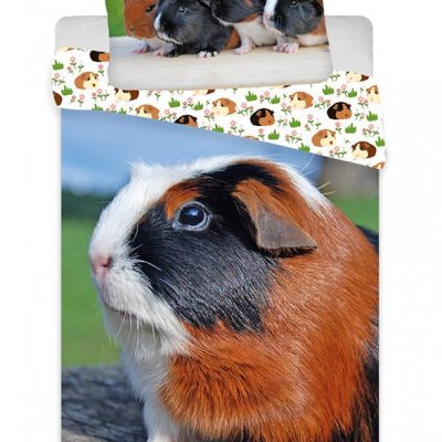 Nádherné posteľné obliečky s motívom morčaťa. Z jednej strany je zobrazený veľké morča ako na fotografii, z druhej strany sú obliečky po celom s malým vzorom morčiat na bielom podklade ako je vidieť na fotografii.
