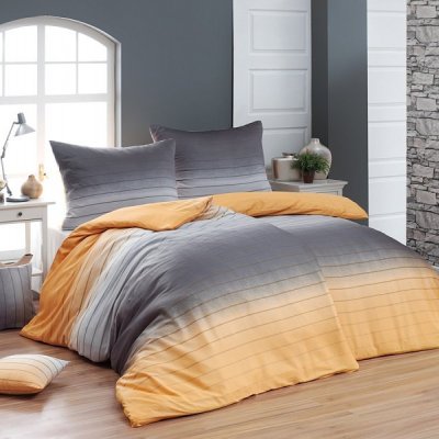 Posteľné obliečky v jemnom dizajnovom prevedení. Posteľné Melina Pink kombinujú hrejivé medovo žlté a šede tóny. Decentný prúžok obliečky s Ombré efektom dodá Vašej spálni elegantný a príjemný vzhľad. Návlek na vankúš je z oboch strán iný pozrite si fotografiu, návlek na prikrývku je z každej strany rovanaký.