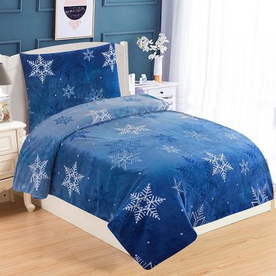 Vianočné Mikroflanelové posteľné obliečky Vločka modrá. Mikroflanel má husté, jemné vlákna, obliečky sú teda hebké a hrejivé, ideálne pre chladné obdobie roka.